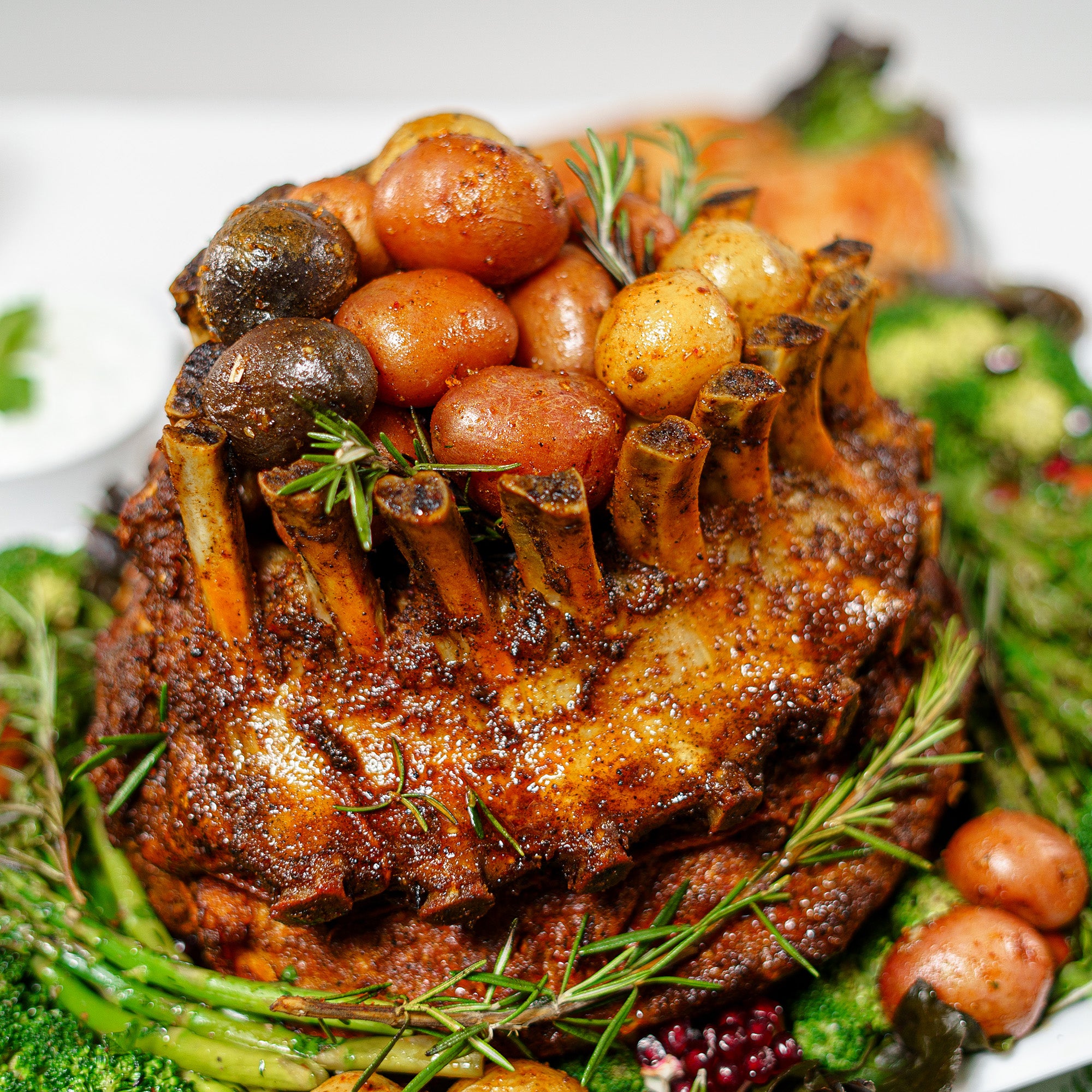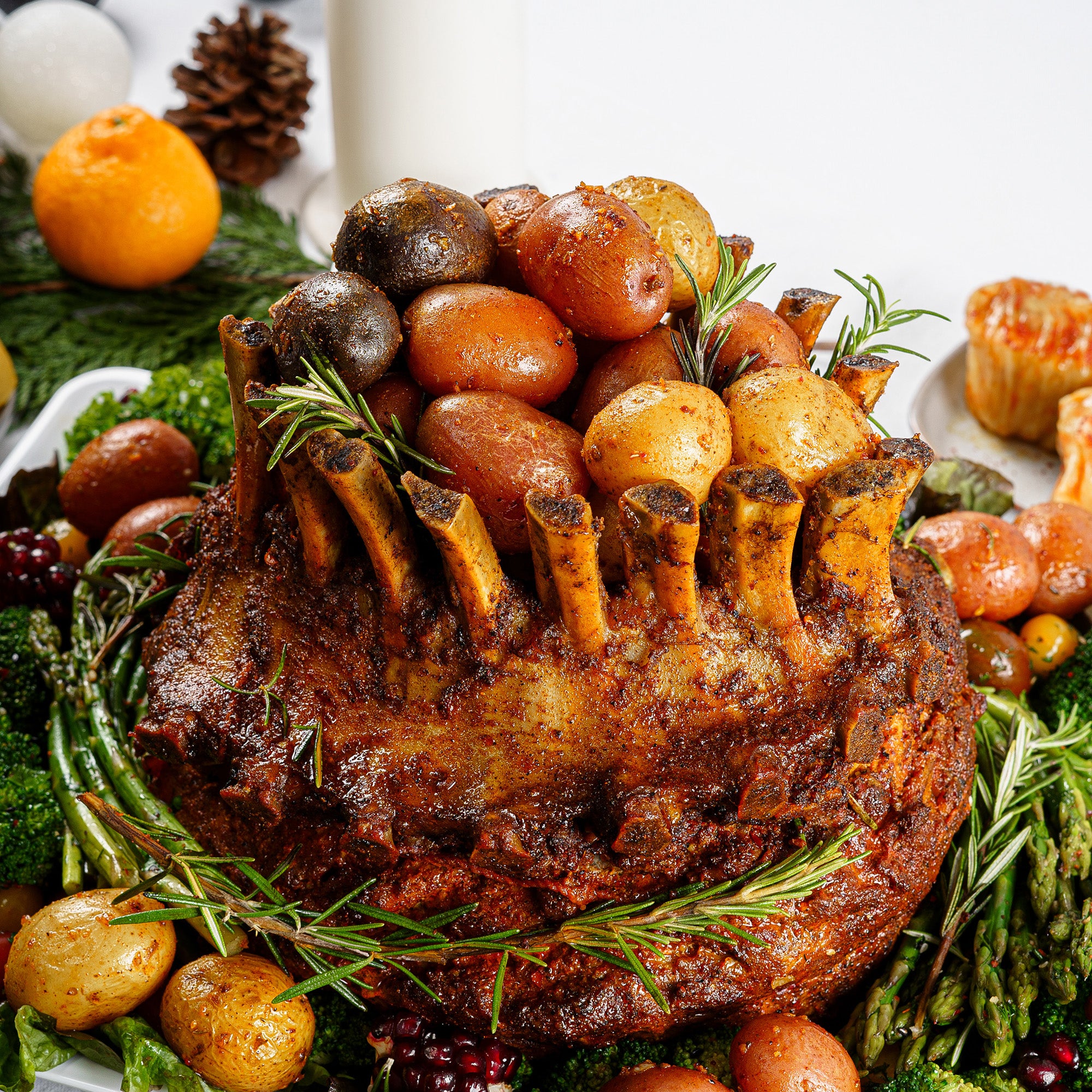 Experience culinary excellence with our Pork Crown Roast, a feast fit for royalty! Our skilled chefs artfully prepare succulent pork ribs, expertly frenched and formed into a magnificent crown. Nestled within and around this regal masterpiece are garden-fresh potatoes, roasted to golden perfection. The result is a harmonious marriage of savory pork and earthy potatoes, creating a symphony of flavors that will enchant your palate. Transform your table into a banquet of indulgence with our Pork Crown Roast featuring delectable garden potatoes — a celebration of taste and elegance. Preorder for the holidays today!